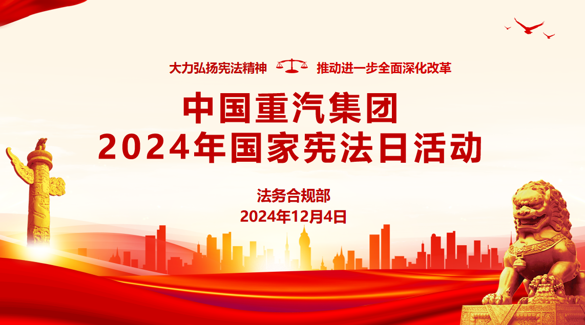 2024年12月4日是我国第十一个国家宪法宣传日,2024年12月1日-12月7日是我国的第七个宪法宣传周。为进一步教育引导集团全体干部职工学习宪法、遵守宪法,强化宪法意识、弘扬宪法精神,近日中国重汽集团根据省国资委、山东重工集团工作安排,组织开展了“宪法宣传周”系列活动。